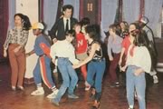 Toute l'équipe en répétition avec les chorégraphes Alain et Vicky le 2/02/80, au dos du 45t Danse autour de la Terre.